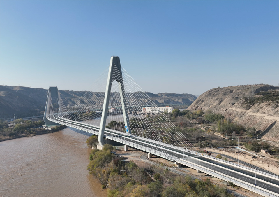 由中國二冶承建的蘭州柴家峽黃河大橋,是目前國內(nèi)曲率半徑最小跨度最大的“S”型曲線雙塔跨黃河斜拉橋。該橋?yàn)椤癆”字型高低塔斜拉索鋼箱梁橋結(jié)構(gòu),橋長1250米,共設(shè)置56對(duì)平行鋼絲斜拉索。大橋構(gòu)筑了蘭州東西向貫穿城市的核心綠脈,對(duì)帶動(dòng)城區(qū)經(jīng)濟(jì)和城市向外拓展具有十分重要的使命,同時(shí)也為“絲綢之路”經(jīng)濟(jì)帶建設(shè)提供重要支點(diǎn)。